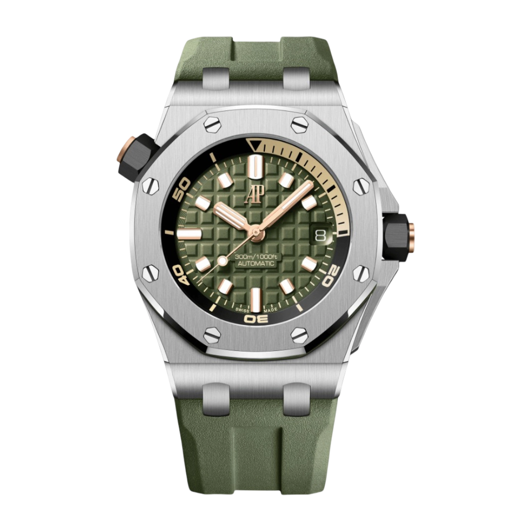 تجسد ساعة أوديمار بيجيه رويال أوك أوفشور دايفر 15720ST.OO.A052CA.01 الجرأة والوظائف العملية في تصميم واحد متكامل. تأتي بعلبة من الفولاذ المقاوم للصدأ بقياس 42 ملم مع الإطار المثمّن الأيقوني، وتبرز اللمسات المصقولة والمصقولة بالفرشاة براعة الحرفية الشهيرة لدار أوديمار بيغيه.