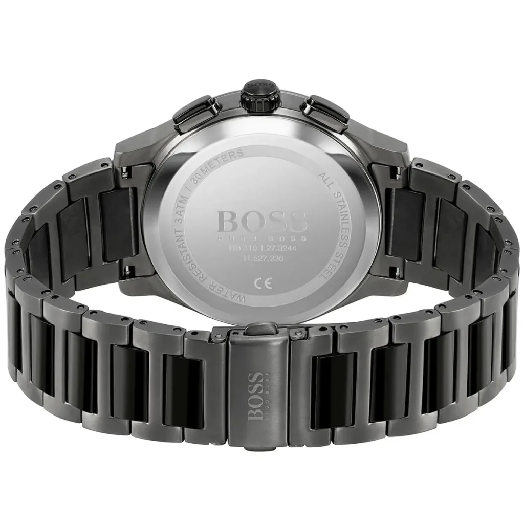 هوغو بوس بيك 1513814 ساعة كرونوغراف جريئة وعصرية للرجال تجسد الأناقة المعاصرة. تأتي بعلبة دائرية من الفولاذ المقاوم للصدأ قطرها ٤٤ ملم وسمكها النحيف ١٠٫٥ ملم، مع ميناء أسود لافت مزين بعقارب وعلامات مضيئة لقراءة ممتازة، وثلاث موانئ فرعية ونافذة تاريخ شهري. سوار ثنائي اللون رمادي وأسود من الفولاذ بعرض ٢٢ ملم يضيف لمسة أنيقة ومتعددة الاستخدامات، بوزن مريح ١٤٢ غرامًا. تعمل بحركة كوارتز دقيقة مع وظيفة ستوب ووتش ومقاومة للماء حتى ٣٠ مترًا. مزينة بتصميم هوغو بوس المميز، تجمع هذه الساعة بين الطاقة الرياضية والأسلوب الراقي، مما يجعلها الرفيق المثالي اليومي للرجل العصري الذي يقدر الدقة والمتانة والفخامة الهادئة.