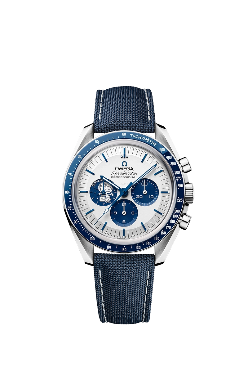 ساعة أوميغا سبيدماستر "تحية سنوبي الفضائية" تحتفي بجائزة "سنوبي الفضية" من ناسا لدور أوميغا المحوري في مهمات الفضاء. تأتي بعلبة فولاذية 42 ملم، وميناء فضي مع ميناءات فرعية زرقاء. يظهر سنوبي المرح مرتديًا بدلة فضاء في الميناء الفرعي عند الساعة 9. أما ظهر العلبة الشفاف، فيعرض مشهدًا دوارًا وحيويًا لسنوبي ومركبته الفضائية وهما يدوران حول الأرض، مما يمزج تراث الفضاء الأيقوني بالحرفية الدقيقة والمرحة.