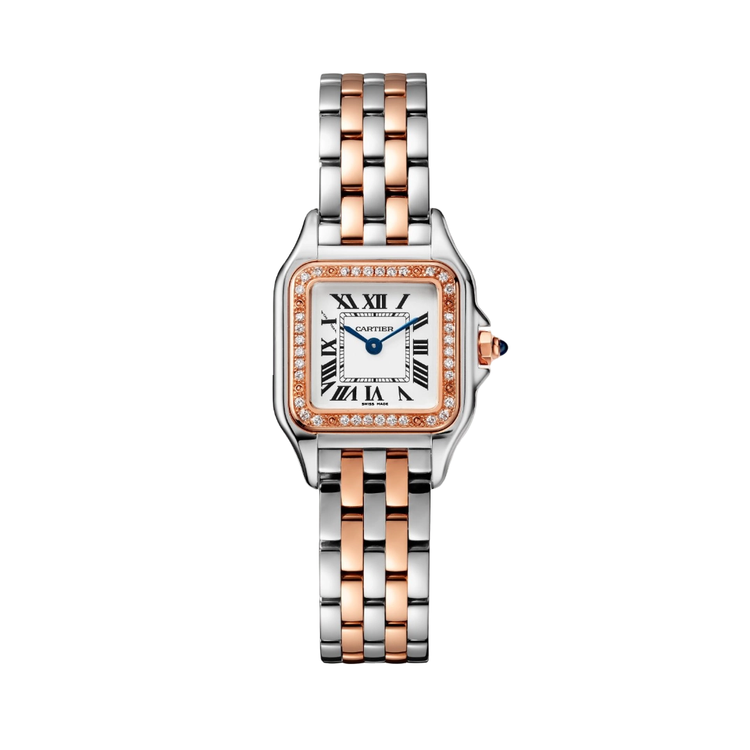 بانتير دو كارتييه صغيرة بلونين من الذهب الوردي والفولاذ ميناء فضي