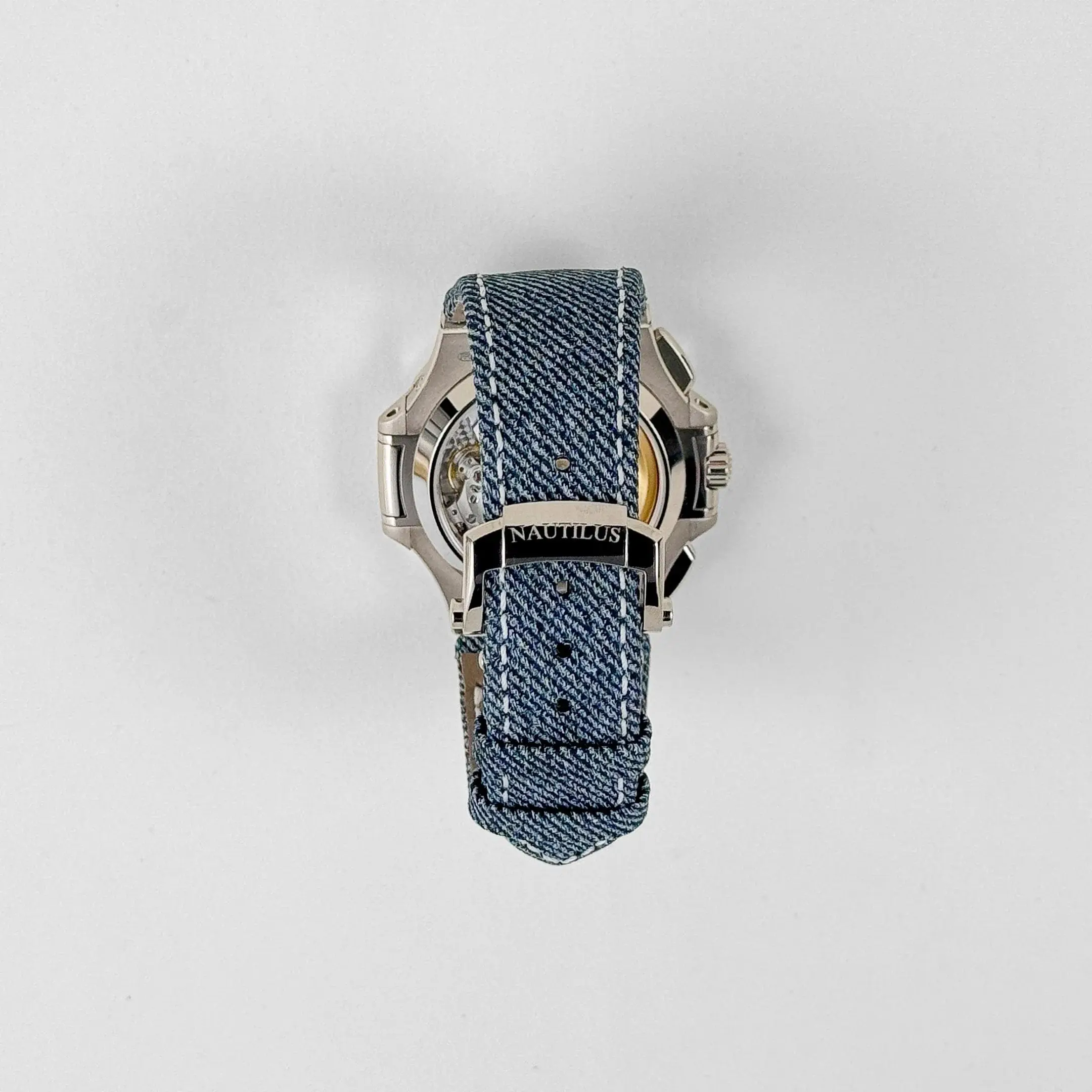 يعكس الميناء الأزرق-الرمادي تصميم السوار ليخلق انسجامًا بصريًا أنيقًا، بينما تضيف وظيفة الكرونوغراف فلايباك مستوى متقدمًا من الأداء. تمثل نوتيلوس "دينم" 5980/60G-001 مزيجًا مثاليًا بين الأناقة العصرية والعملية اليومية، مما يجعلها قطعة بارزة لهواة الساعات الذين يقدرون الابتكار الحديث والتصميم الكلاسيكي.