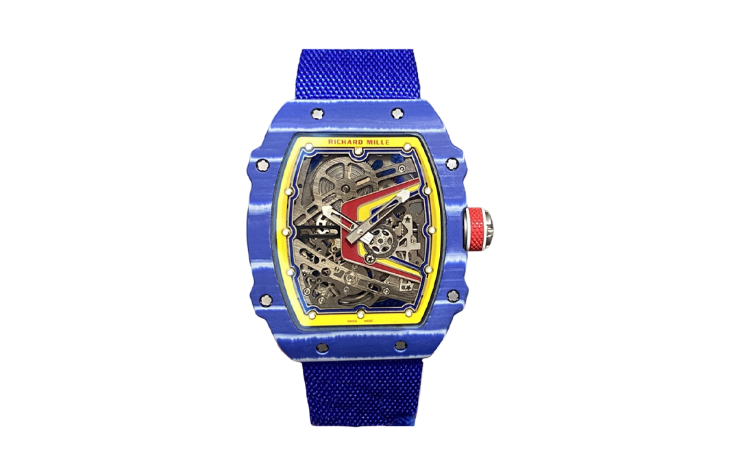 نسخة مقلدة مخصصة عالية الجودة مستوحاة من ساعة ريتشارد ميل RM 67-02 أوتوماتيك إكسترا فلات إصدار فرناندو ألونسو، المخصصة لأسطورة الفورمولا 1 الإسباني مع علبة زرقاء مذهلة من ألياف الكربون NTPT وسوار مرن أزرق مطابق. يحمل القرص الهيكلي طابع "إسبانيا" مع لمسات جريئة حمراء وصفراء مستوحاة من العلم الإسباني، مما يتناسب تماماً مع الفخر الوطني وتراث ألونسو في السباقات. تأتي هذه الساعة الرياضية الرفيعة جداً والخفيفة للغاية بأبعاد 39 مم × 7.8 مم (تطابق الأصلية تماماً لإرگونومية فائقة وراحة على المعصم)، مع علبة زرقاء من مادة NTPT المركبة بنمط منسوج معقد مميز يوفر متانة عليا ووزناً ضئيلاً – تحاكي الوزن الكلي الرائع للأصلية (~34 غراماً) الذي يجعلها تبدو غير موجودة تقريباً. تعمل بحركة آسيوية معدلة مقلدة لعيار CRMA7 الهيكلي التلقائي، توفر عرضاً دقيقاً للساعات والدقائق عبر قرص هيكلي مفتوح بالكامل يكشف الآليات المتطورة. مزودة بكريستال ياقوتي منحني مقاوم للخدش مع طلاء مضاد للانعكاس للوضوح التام، ومكتملة بسوار مرن أزرق سلس من القماش المسامي (نوع فنتايل، مريح جداً وسريع الجفاف ومرن للغاية) مصمم للأداء الرياضي العالي. يجمع هذا الكلون ببراعة بين تصميم ألونسو المستوحى من رياضة السيارات وألوان إسبانيا الوطنية، مانحاً الفخامة الطليعية والخفة الشديدة والطاقة الديناميكية للـ RM 67-02 الأصلية بسعر معقول.