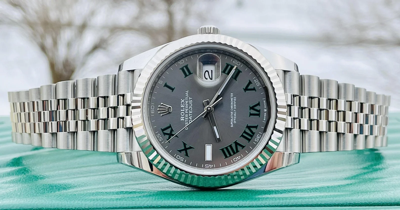 ساعة رولكس ديت جست 41 "ويمبلدون" بميناء رمادي وأرقام رومانية 126334