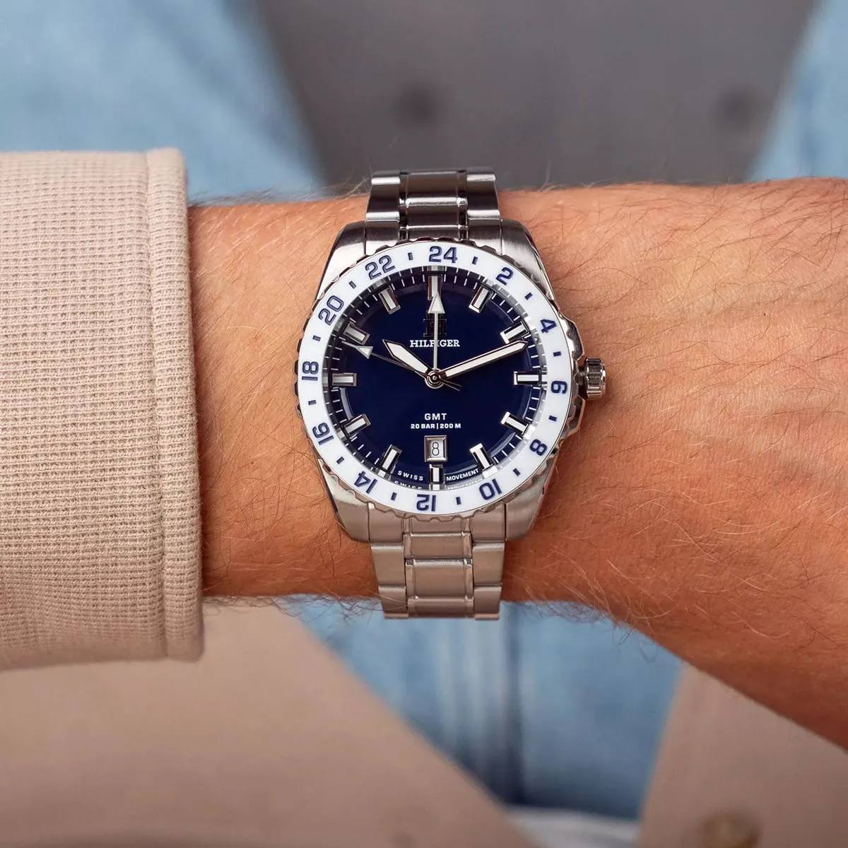 تومي هيلفيغر TH85 1792132 ساعة أنيقة للرجال تجسد أسلوب العلامة الأمريكي البريبي الأيقوني بالرقي الخالد. تأتي بعلبة دائرية مصقولة من الفولاذ المقاوم للصدأ قطرها ٤٢ ملم وسمكها ١١ ملم، مع ميناء أزرق آسر مزين بعقارب وعلامات مضيئة لقراءة ممتازة في كل الإضاءات، ونافذة تاريخ شهري عملية. سوار الفولاذ الفضي بعرض ٢٠ ملم يمنح ارتداءً فاخرًا ومريحًا بوزن ١٤٧ غرامًا. تعمل بحركة كوارتز دقيقة توفر توقيتًا موثوقًا ومقاومة للماء حتى ٢٠ مترًا. مصممة بأسلوب تومي هيلفيغر النظيف المميز، تفيض هذه الساعة التناظرية بالتنوع السلس والسحر العصري، مما يجعلها إكسسوارًا يوميًا مثاليًا للرجل المعاصر الذي يقدر الحرفية المتينة واللون الجريء والأناقة الهادئة.