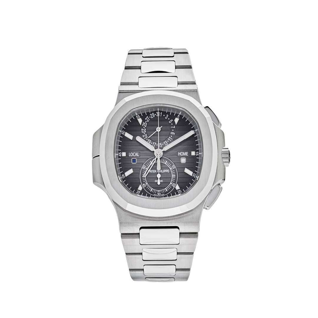 Equipped with a dual time zone function with day/night indicators, a flyback chronograph with 60-minute counter, and a date integrated into the subdial at 6 o’clock, it offers both practicality and refinement. Paired with an integrated stainless steel bracelet, this model is the ultimate expression of Patek Philippe’s innovation and timeless style—ideal for world travelers and collectors alike.