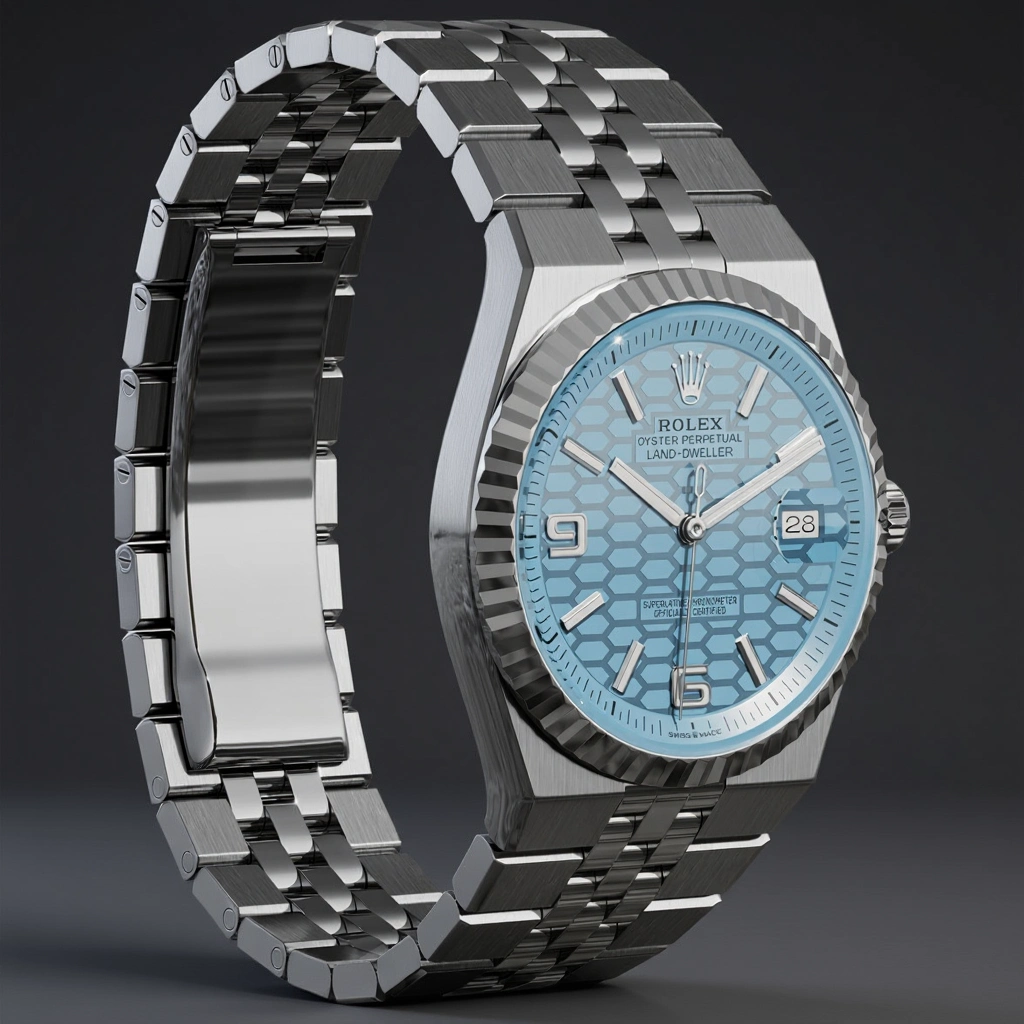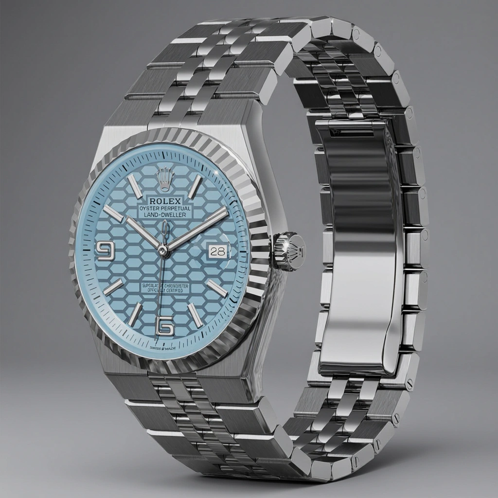 At its heart, the 127336 is powered by Rolex’s automatic caliber, offering precision, a robust power reserve, and Superlative Chronometer certification. Paired with a fully integrated platinum bracelet, the Land-Dweller 127336 is a seamless blend of technical excellence, innovation, and ultra-luxury—crafted for collectors who demand nothing less than Rolex’s highest expression of watchmaking