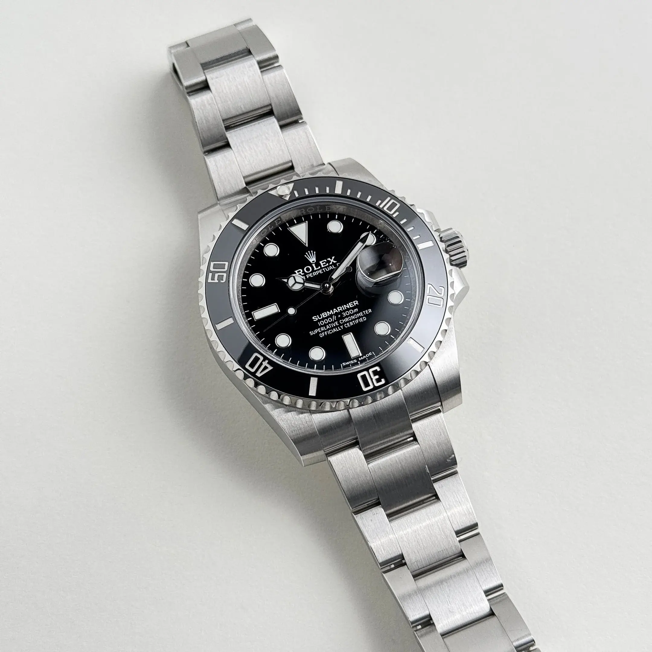 The Rolex Submariner Date 126610LN represents the latest evolution of the iconic professional diver’s watch. It features a durable 41 mm stainless steel Oyster case with a scratch-resistant black Cerachrom bezel and matching black dial. The refined design includes a slightly larger case, slimmer lugs, and a rebalanced bracelet for enhanced wrist presence. The unidirectional bezel and luminous markers ensure excellent readability, while the Cyclops lens over the date window provides clear and practical functionality.